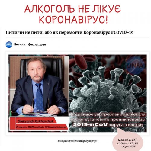 Заявления каких-то псевдопрофессоров о пользе алкоголя для профилактики вируса, советы «японских докторов» о частом питье воды и т. д.