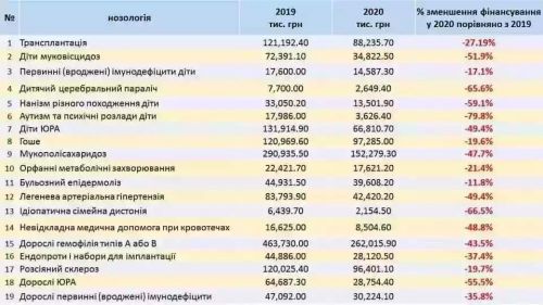 Теперь в законопроекте про бюджет на 2020 год указано, что расходы на закупку лекарств для людей, например, с муковисцидозом составят 34,822 млн гривен (на 2019-й заложено 72,393 млн гривен).