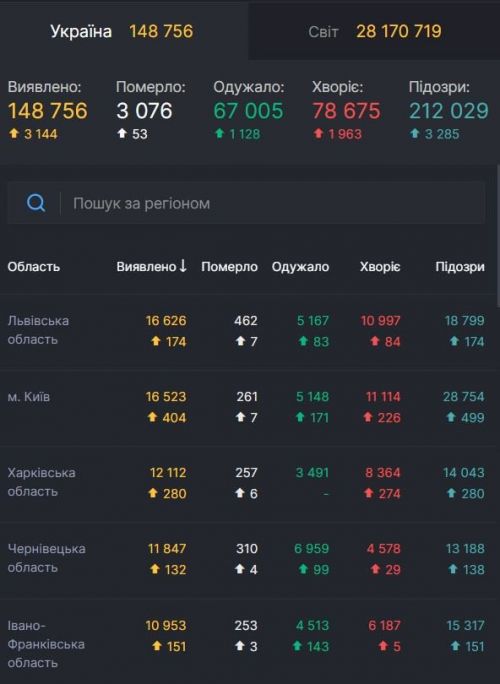Напомним, что сегодня, в Украине новый антирекорд по заболеваемости COVID-19 – 3144 человека (среди них – 206 детей и 142 медработника). В больницы попали 508 пациентов. Умерли 53 человека. Выздоровели за прошедшие сутки 1128 людей.