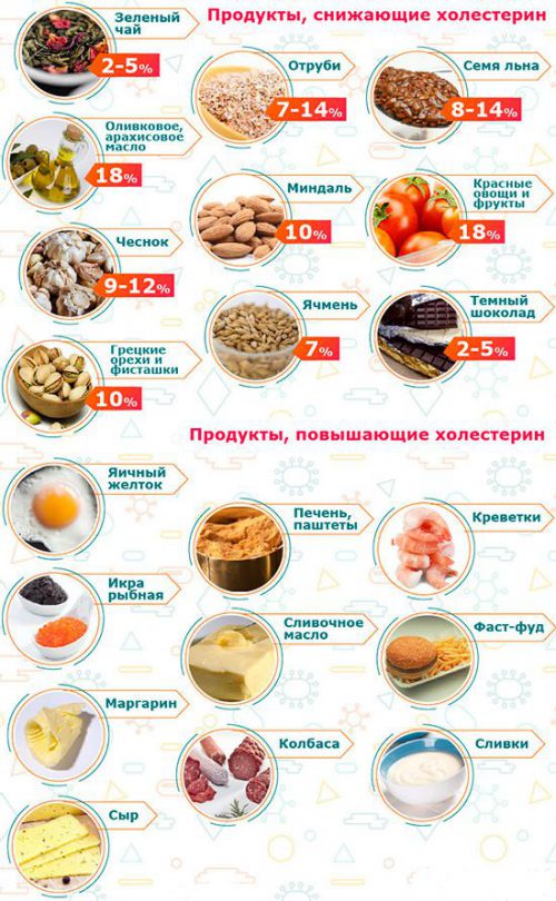 Увеличение холестерина является частью процесса, который сужает артерии (атеросклероз) где формируются бляшки, приводящие к ограничению кровотока.Сокращение потребления жира в рационе помогает регулировать уровень этого масляного вещества. В частности, полезно сократить в своем рационе продукты, которые содержат: