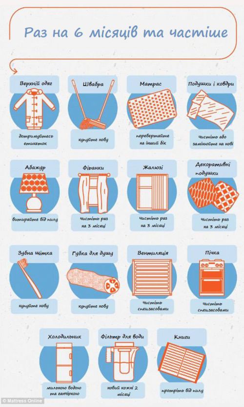 Жалюзи, шторы, абажуры и декоративные подушки стирайте каждые три месяца. Ежеквартально стоит убирать свою библиотеку.
